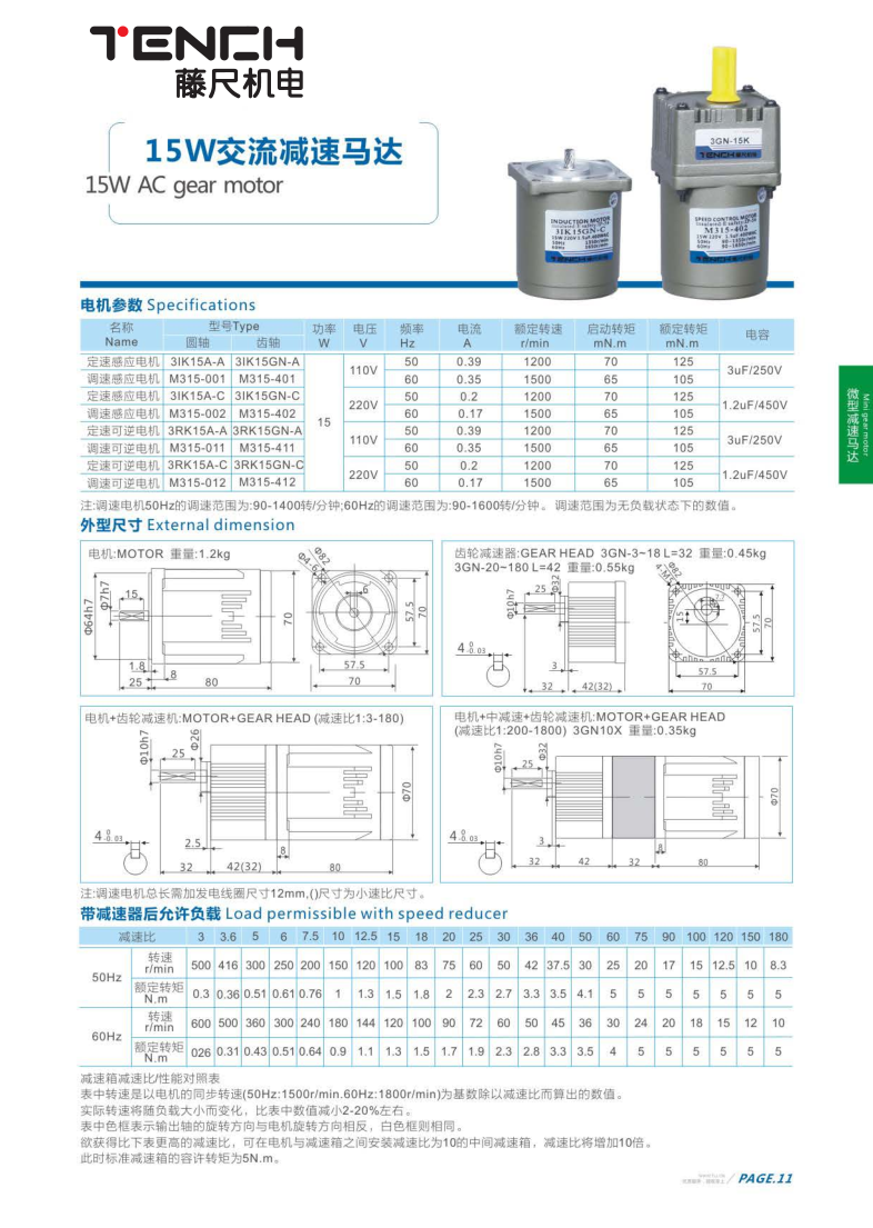 調(diào)速感應(yīng)電機(jī),圓軸型號:M315-002,齒軸型號M315-402,